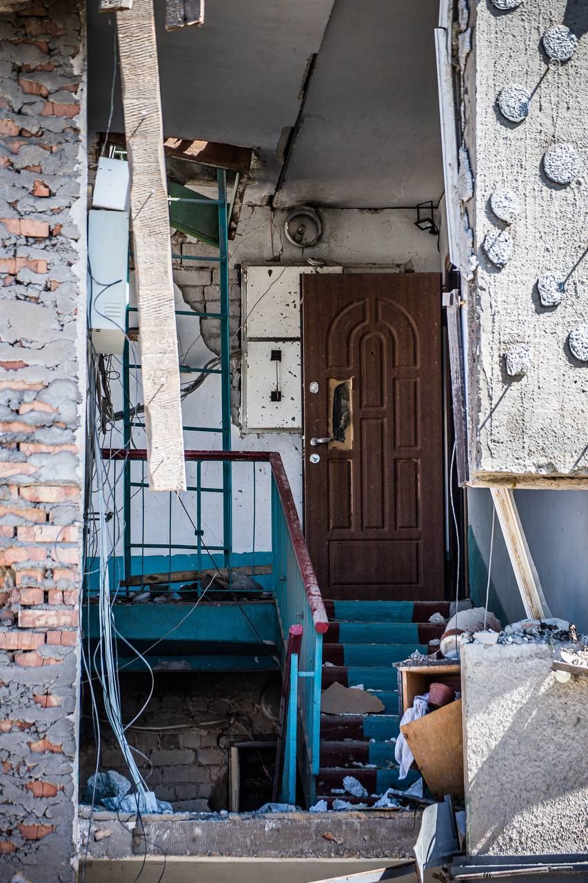 Ракетний удар 3 червня забрав життя маленької дівчинки. Ще 22 людини отримали поранення різного ступеню тяжкості. Наразі пошукові роботи завершилися. На місці прильоту валяються вцілілі після пожежі речі мешканців. Тут дитячі іграшки, книжки, малюнки, а в зруйнованому будинку видно комірку, де люди зберігали консервацію.