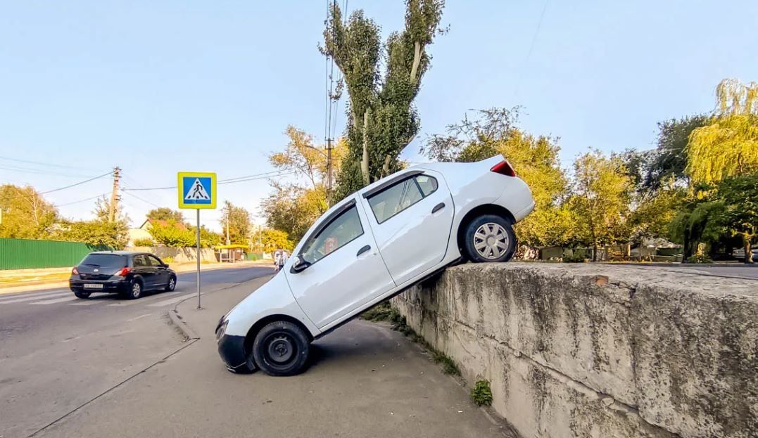 У Дніпрі автівка застрягла на парапеті: стало відомо, як це сталося