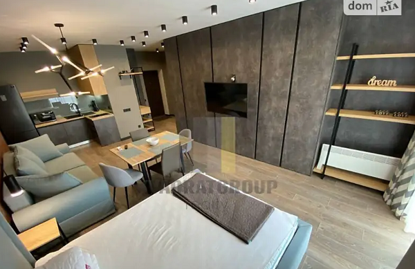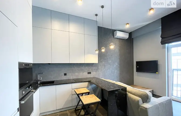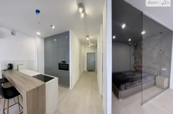 За 2,9 млн грн можна купити однокімнатну 48 кв.м на вулиці Європейська. Квадратний метр тут також коштуватиме 62 тис грн. Знаходиться на 19 поверсі 22 поверхового будинку. Обладнана системою «розумний дім». У ЖК для мешканців працює басейн. У квартирі буквально все знаходиться в одній кімнаті – від плити та столу для приготування їжі до ліжка.