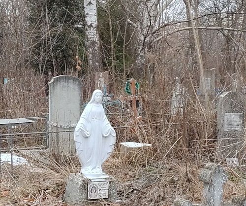 Також на могилах встановлювали не хрести, інші церковні символи-статуї. Іноді поєднують обрубане дерево і діву Марію.