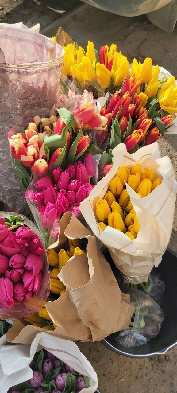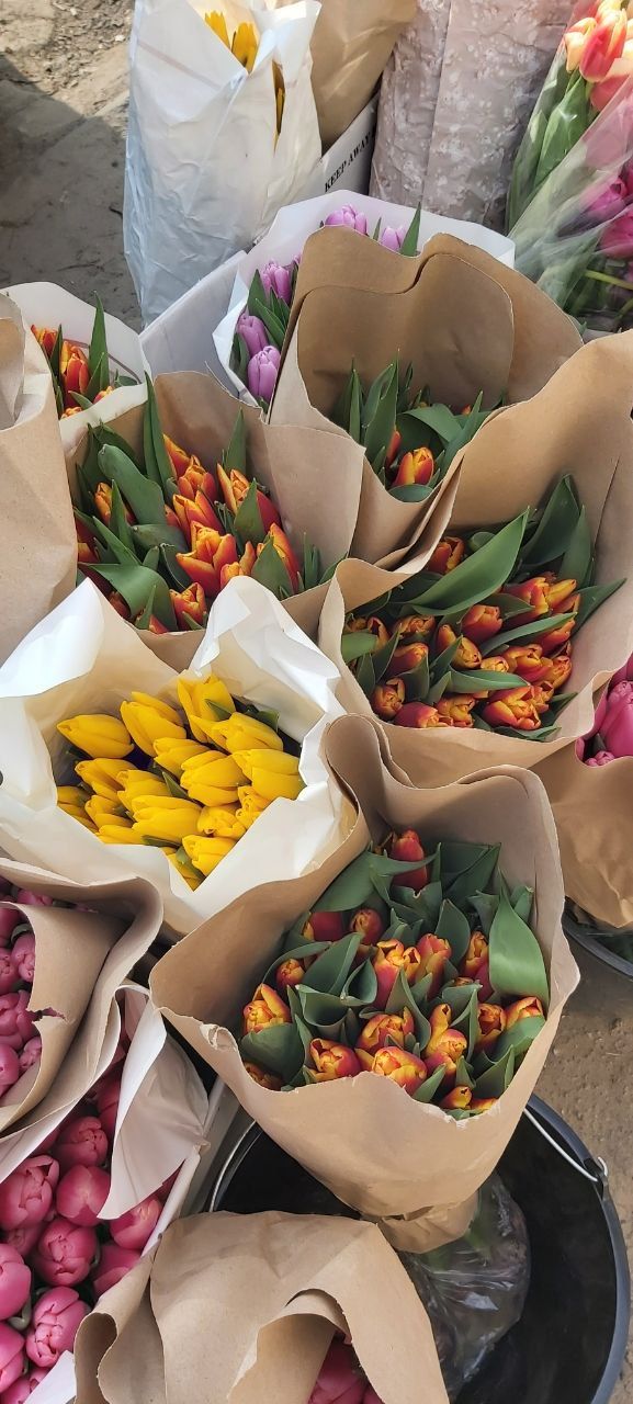 Якщо брати букетик з 25 тюльпанів, то він обійдеться в 1250 грн (це якщо квітка по 50 грн). Але, за словами продавців, вони готові "запакувати" будь-яку кількість!