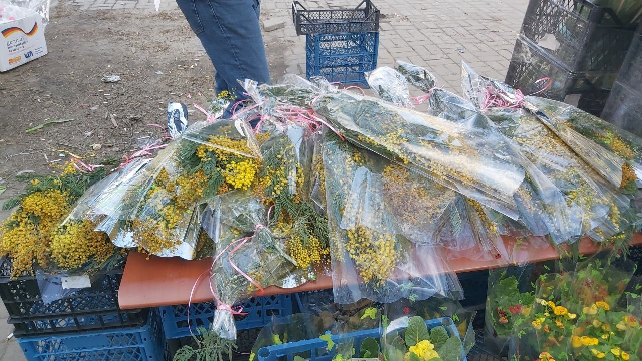 Є і інші квіти. Мімоза - від 50 до 150 грн за букетик (все залежить від кількості гілочок).