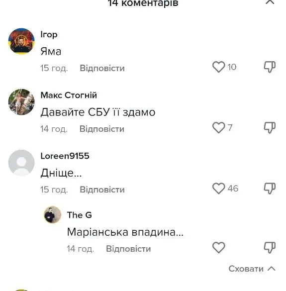 Після публікації інтерв'ю блогерку почали критикувати у соціальних мережах: "Яма", "Давайте її СБУ здамо", "І сидить з гербом України на кофті...", "Пропоную скинутись на квиток їй в рашку" тощо.