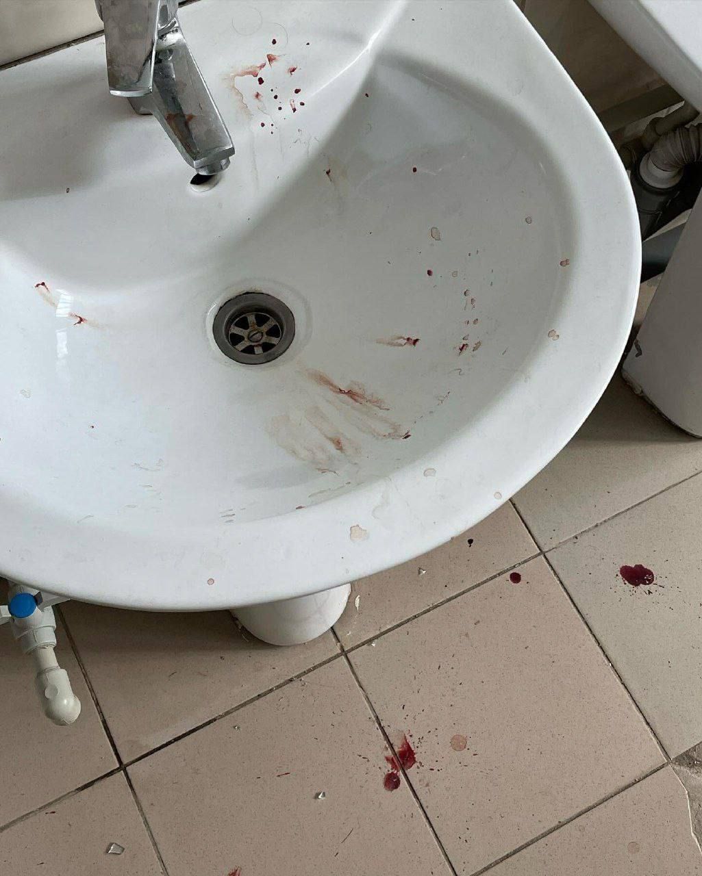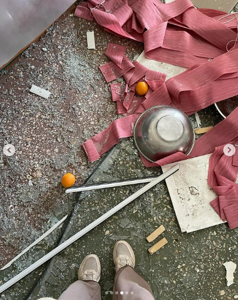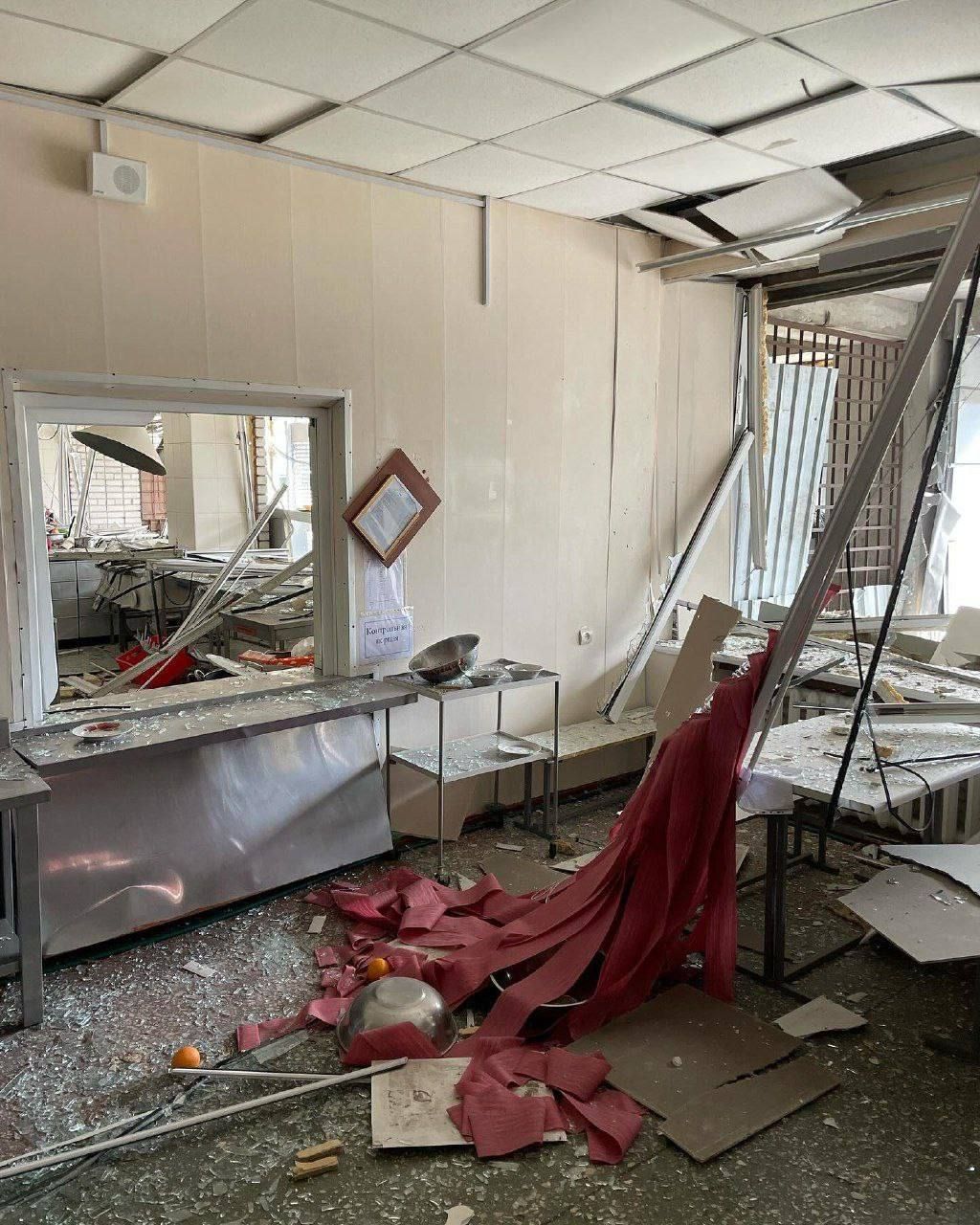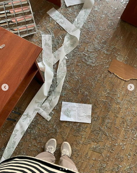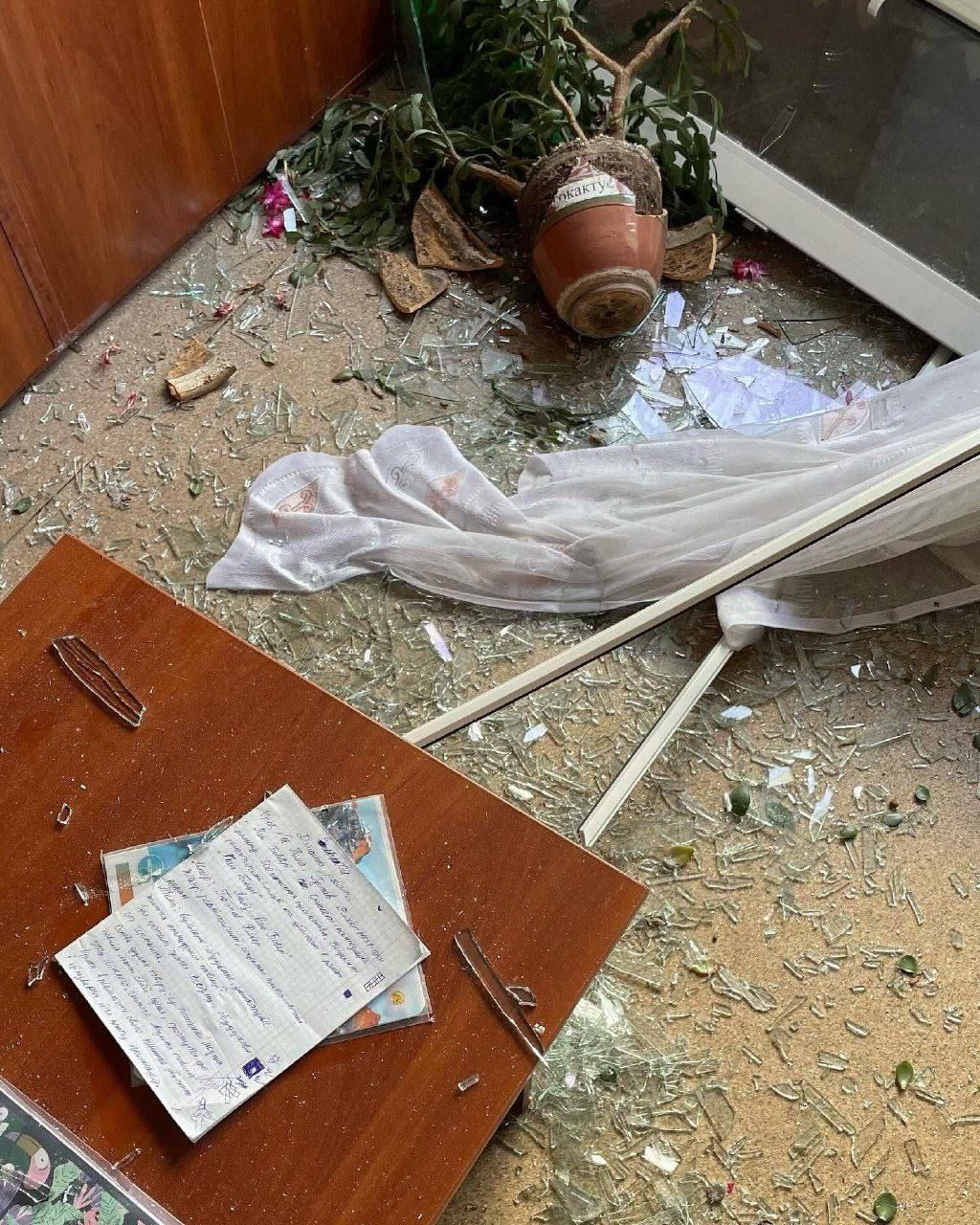 На фото - повна розруха, усюди бите скло, розкидані зошити.
