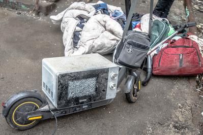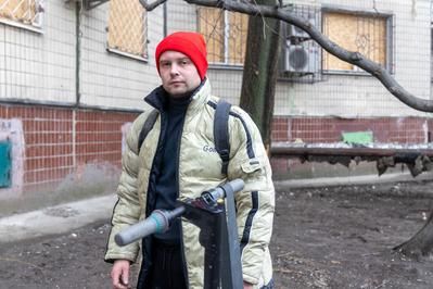 Віталій виніс із понівеченого під’їзду побиту мікрохвильову, пилосос, трохи одягу. Розповів: лежав у ліжку, коли його накрило вибуховою хвилею.