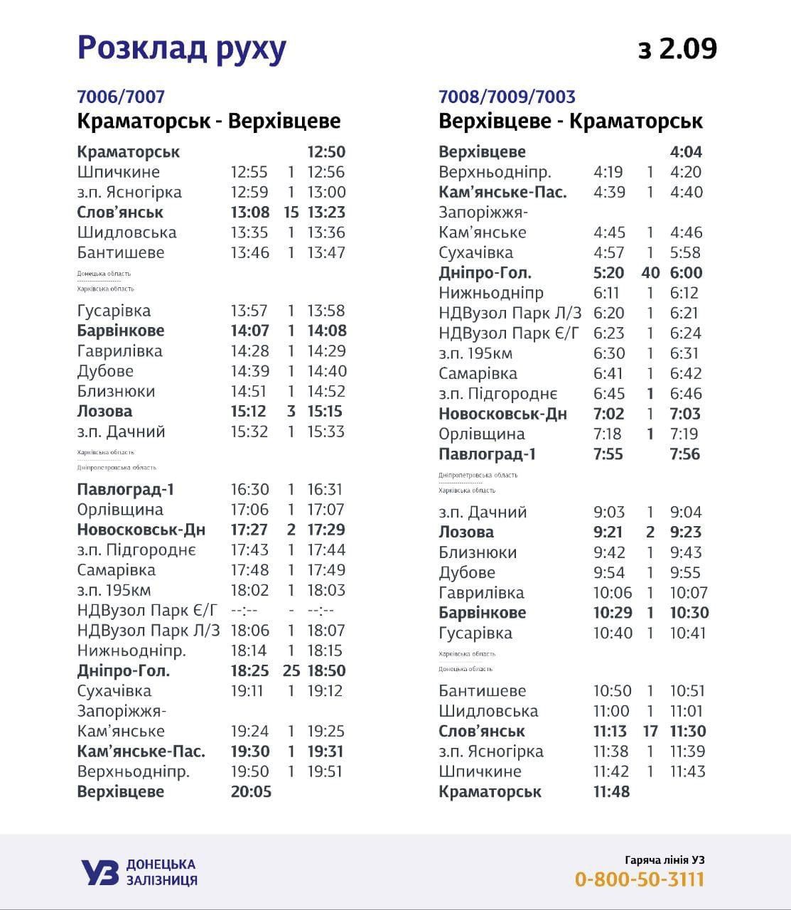 З 2 вересня почне курсувати поїзд Краматорськ – Верхівцеве – Краматорськ, який прямуватиме через Павлоград, Новомосковськ, Дніпро та Кам'янське.