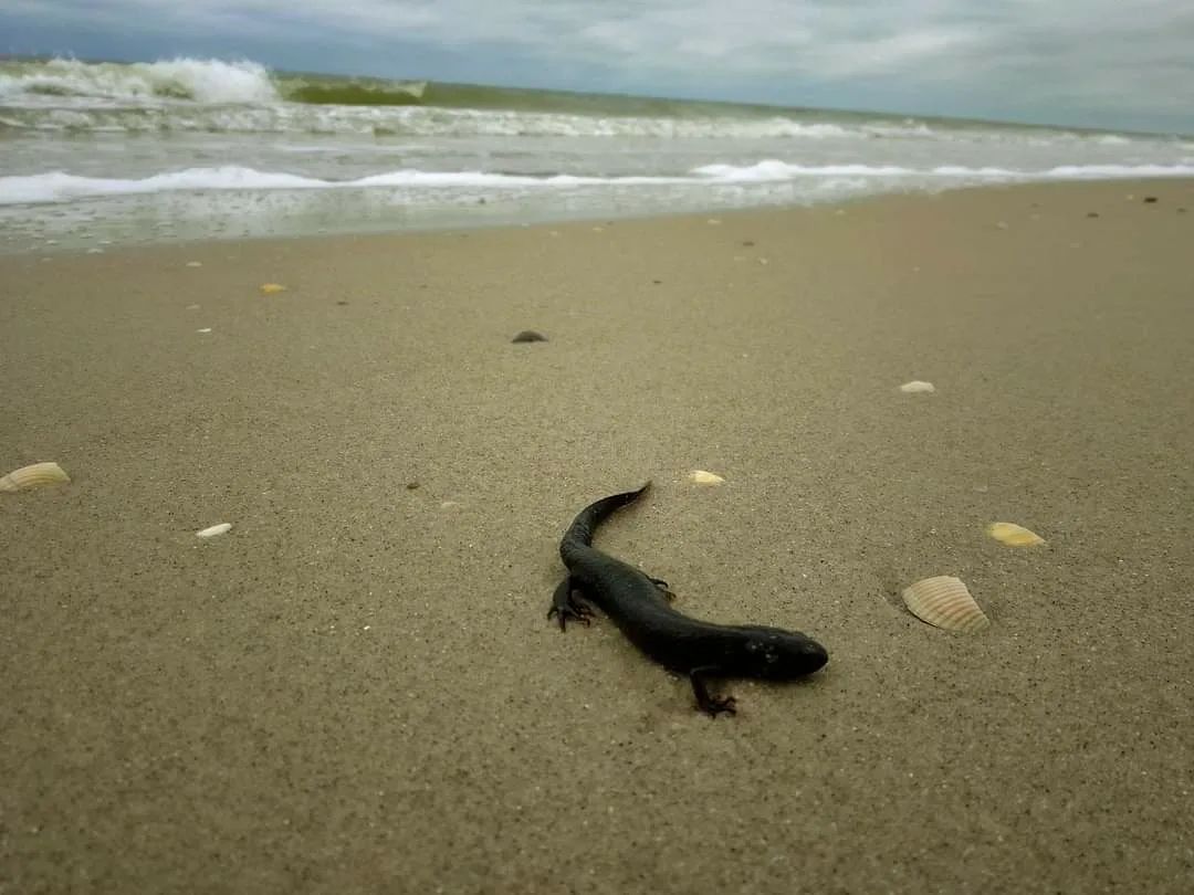 Сотні тритонів, занесених до Червоної книги України, загинули через підрив ГЕС. Ці створіння мешкали в річці Дніпро, але після катастрофи їх знесло потоком води далі за течією, а потім винесло на узбережжя Чорного моря.