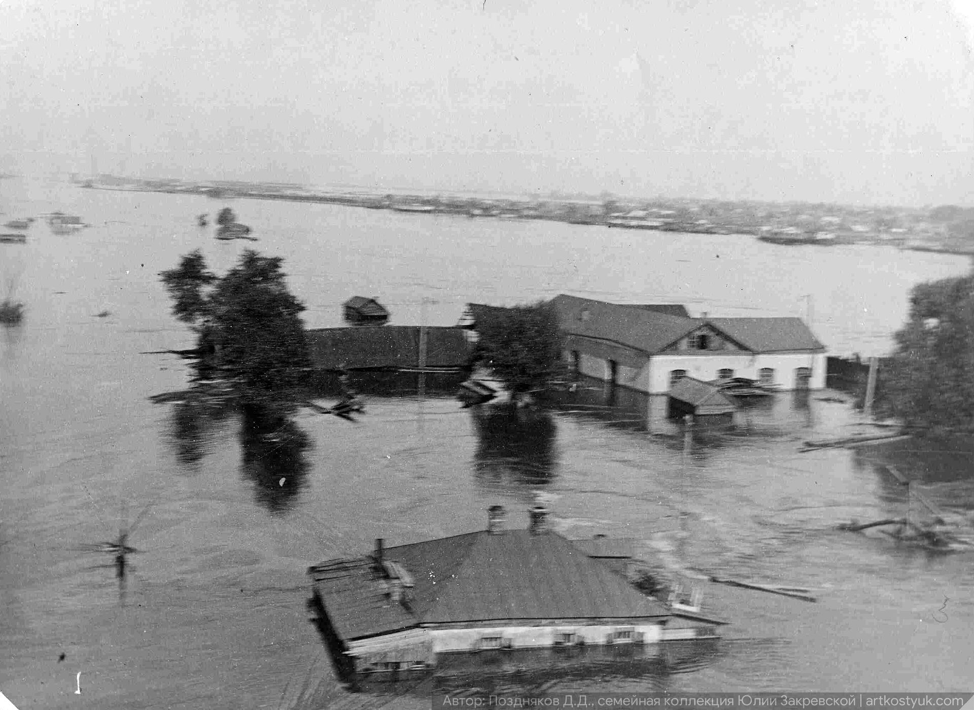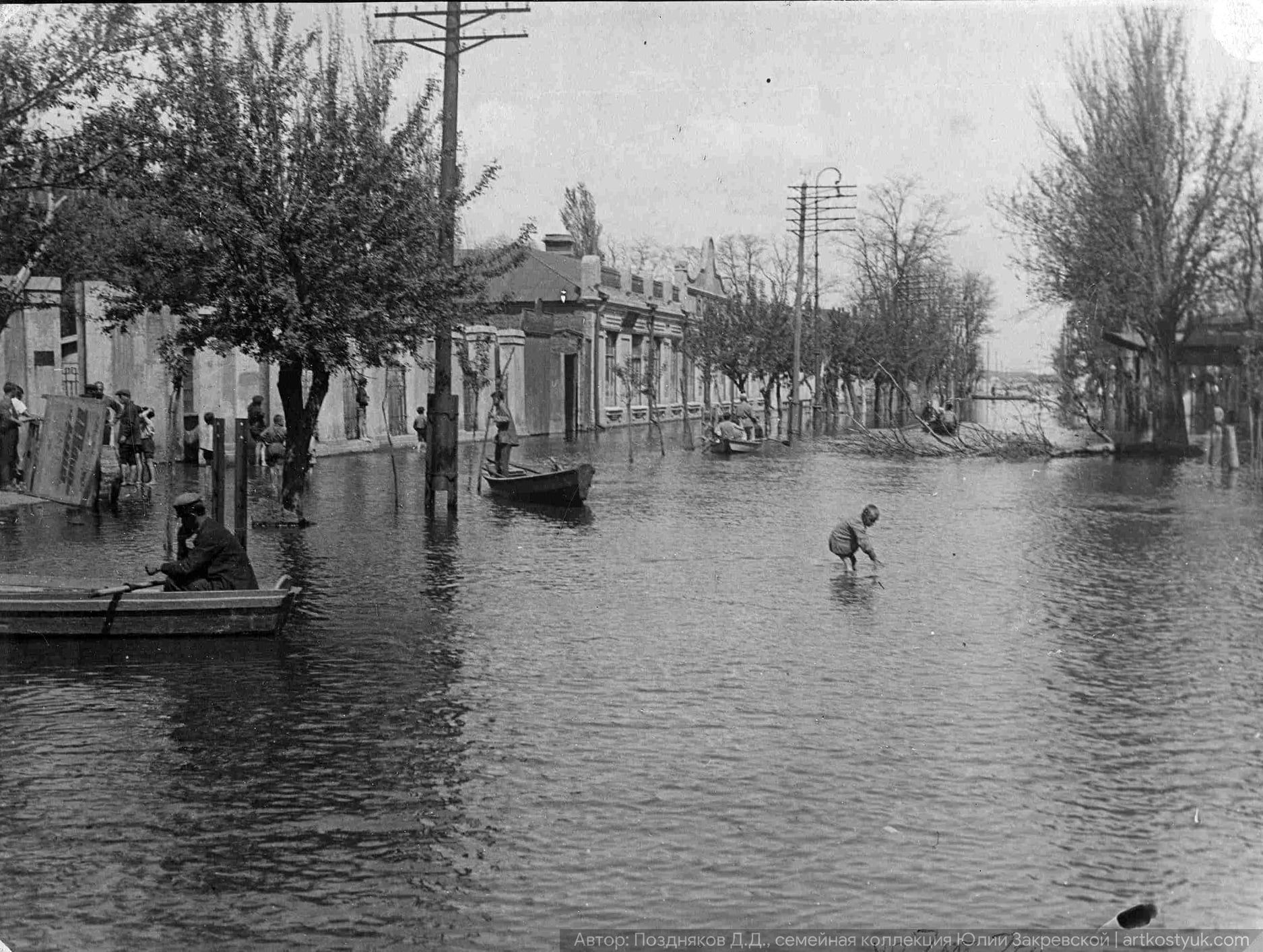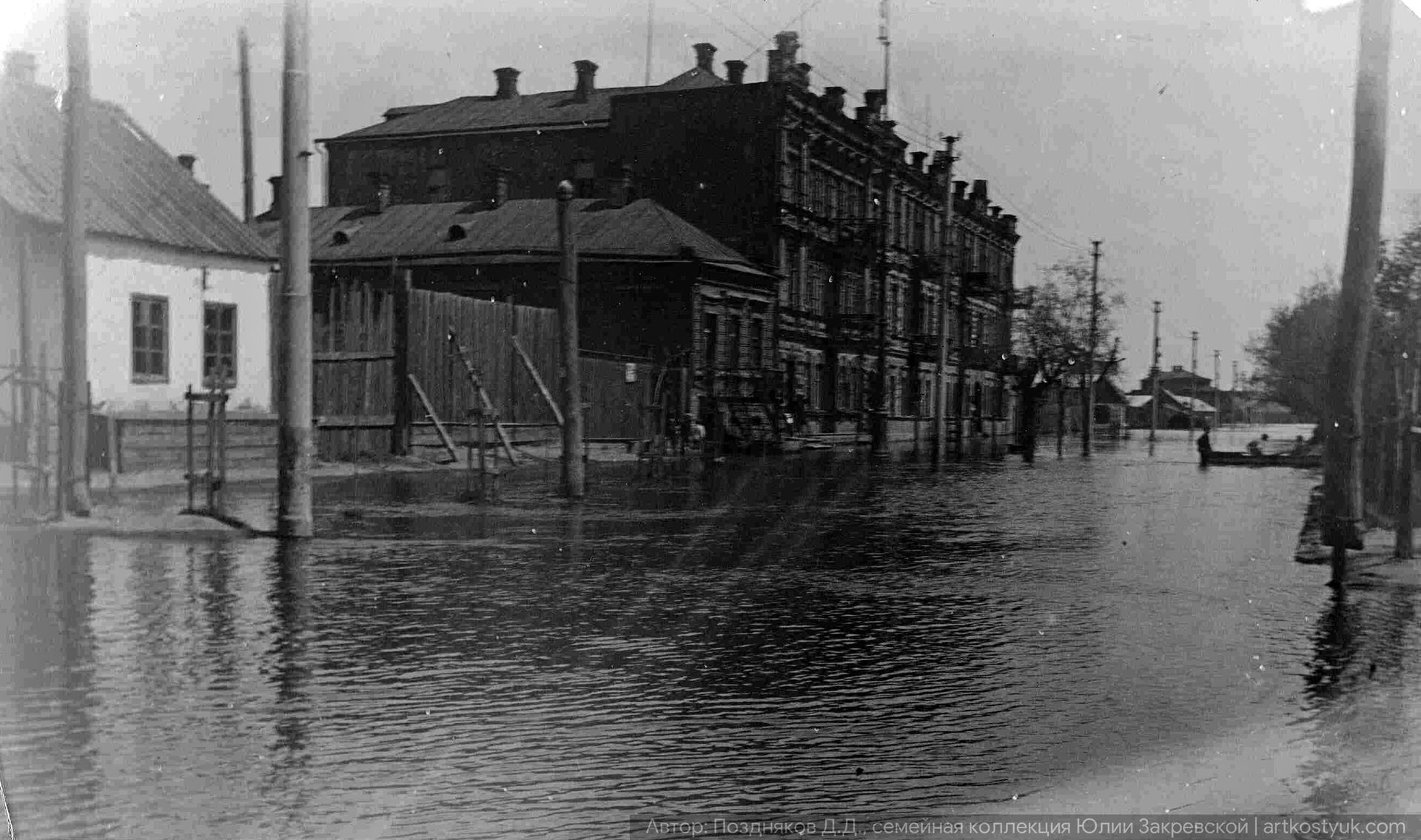 Місцеві газети писали тоді, що вся берегова смуга від нинішньої вулиці Княгині Ольги до парку Шевченка була залита водою. Збереглися фото, як виглядав тоді центр. На вулиці Воскресенській люди пересувалися човнами.