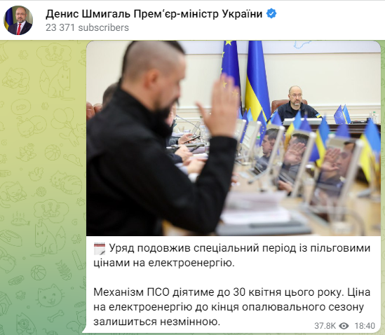 1 квітня мав закінчитися спеціальний період із пільговими цінами на електроенергію. Тому сьогодні уряд приймає рішення про його продовження, — заявив він.