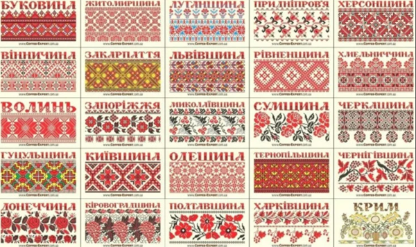 Свій традиційний малюнок та кольори для вишивки має не лише кожен регіон України, а й кожне село. На Закарпатті традиційні візерунки для вишиванки – геометричні фігури, на Волині переважають рослинні «малюнки», два кольори в оформленні вишиванки були традиційними для Вінницької, Хмельницької та Черкаської областей. На Полтавщині та Чернігівщині традиційними вважаються однотонні вишиванки, де збігається колір сорочки та ниток з яких виконано малюнок на ній.