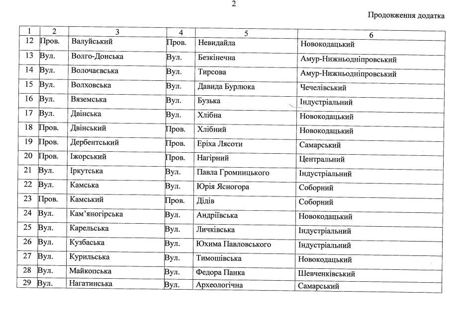 У Дніпрі збираються перейменувати ще 54 вулиці та провулки.