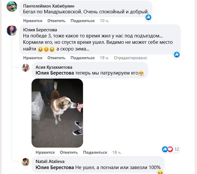 Помітила пса і дніпрянка Леся Куралєсова, яка запропонувала знайти собаці сім'ю. За її словами, сумний велетень сидів біля під'їзду на проспекті Героїв і постійно дивився на двері. Він розчулив мешканців району, проте ніхто не мав можливості забрати тварину до себе.
