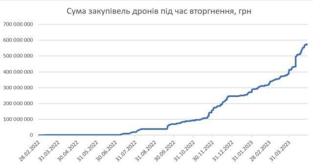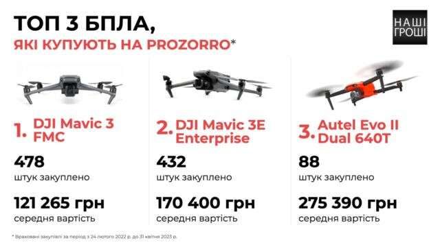 Від початку вторгнення у «Прозорро» оприлюднені дані про чотири сотні закупівель понад 2000 дронів на загальну суму 554 млн грн.