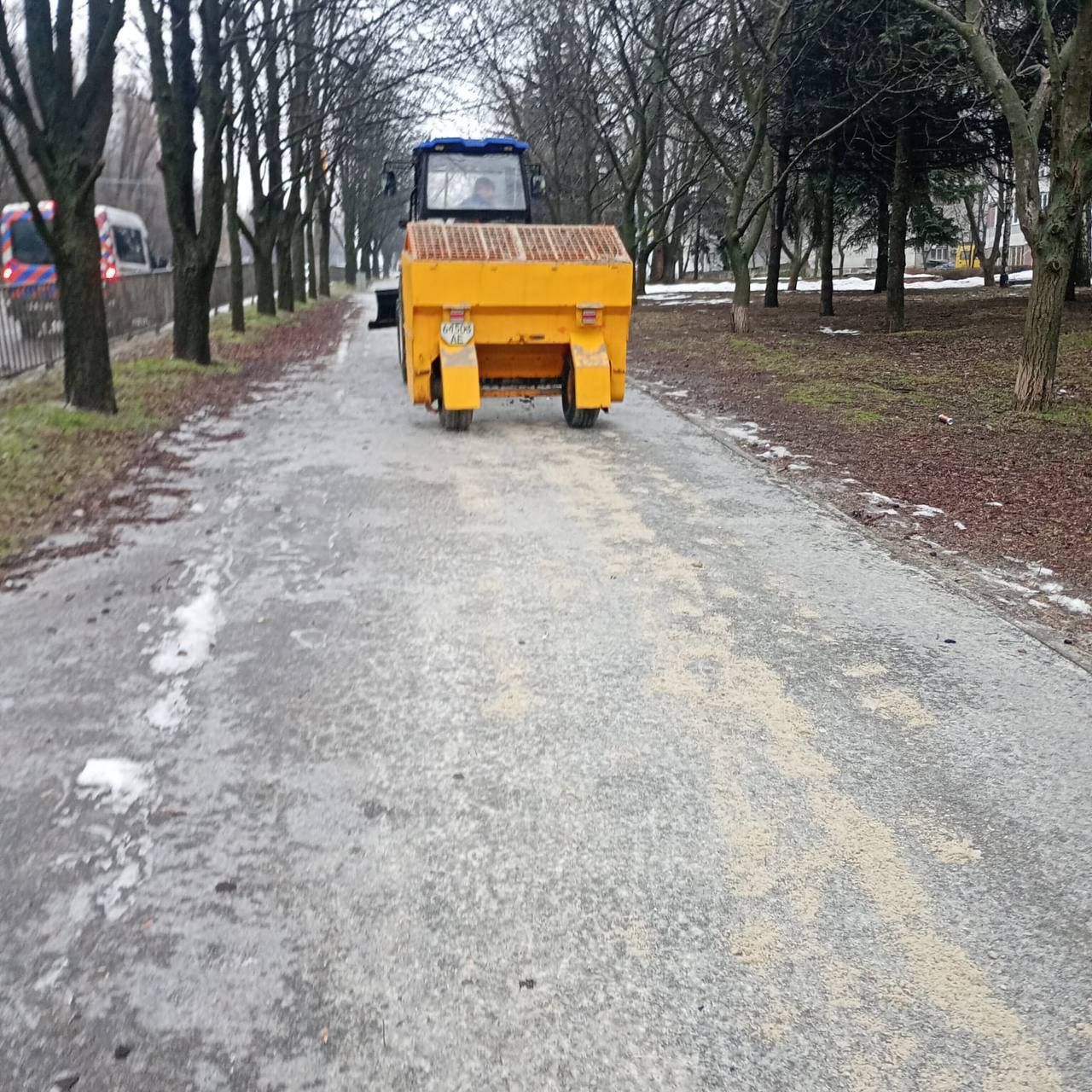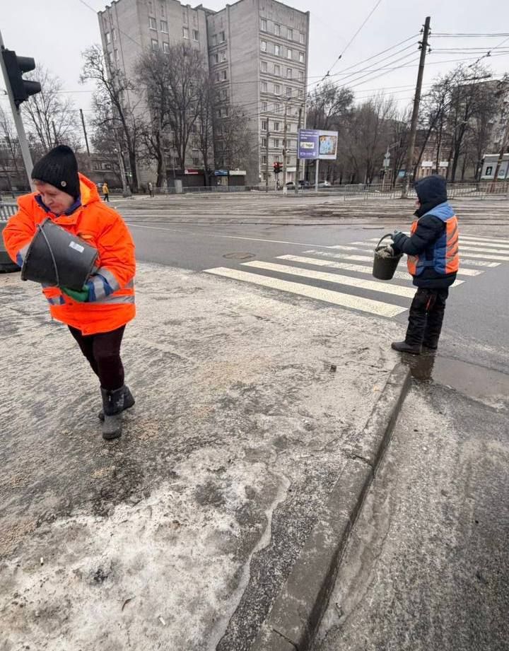 Комунальні служби міста борються з ожеледицею, обробляючи дороги й тротуари. Зазначається, що роботі задіяно 57 піскорозкидачів, 7 навантажувачів, 13 одиниць мінітехніки та 500 працівників комунальних служб. Наразі використано майже 800 тон протиожеледного матеріалу. Роботи тривають. Водіїв просять за можливості утриматися від поїздок містом без нагальної потреби.