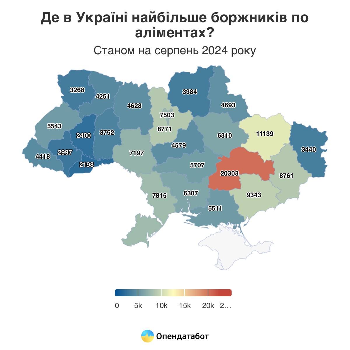 Варто зазначити, що у 32,9 тисячі проваджень через борги по аліментах регіон не вказано.