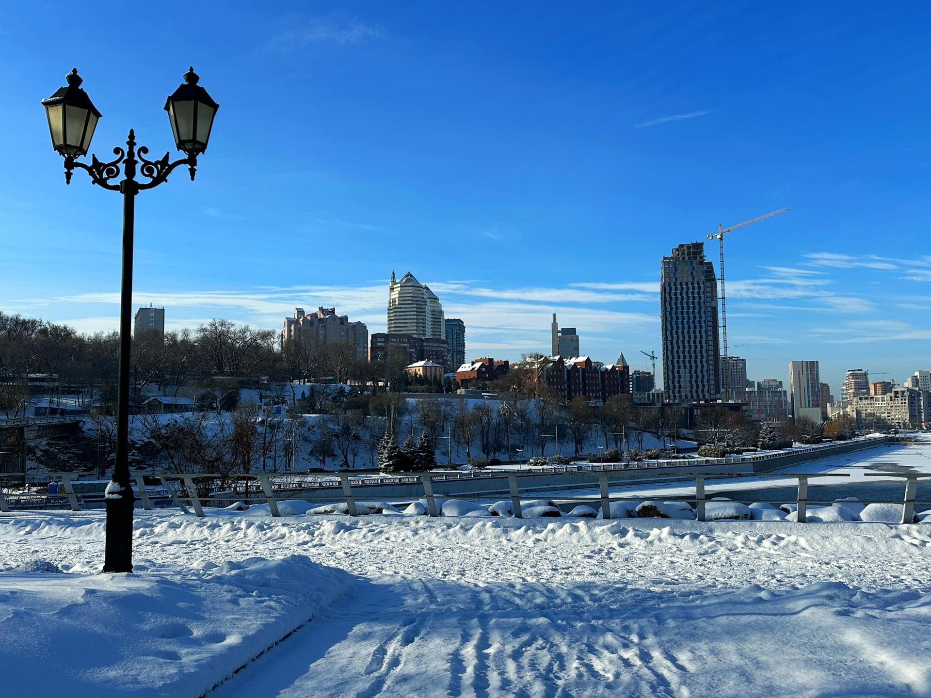 У Дніпрі показали, як виглядає Монастирський острів скутий морозами та снігом.
