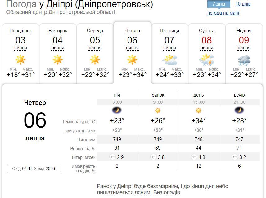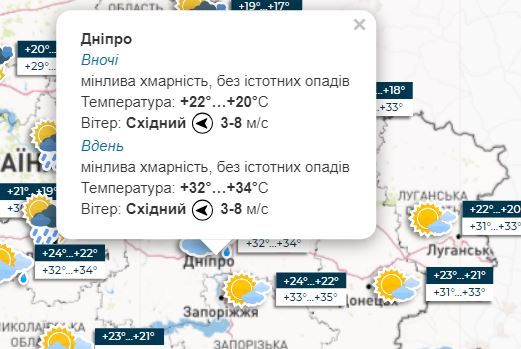 Разом із спекою будуть короткочасні дощі з грозами, проте ці опади не принесуть прохолоди. Що ж стосується Дніпра, то в місті весь тиждень буде панувати африканська спека.