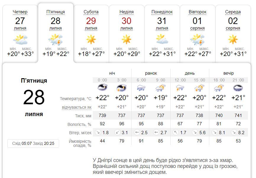 Регіональний центр з гідрометеорології повідомив, що завтра, 28 липня, у Дніпрі та області очікується значне погіршення погоди.