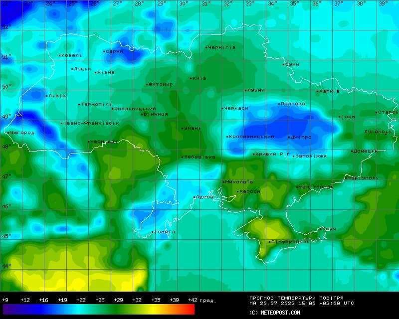 За прогнозами синоптикині Наталки Діденко, 20 липня майже по всій території України пройдуть дощі. При грозах можливі короткі сильні зливи, рвучкий вітер та град.