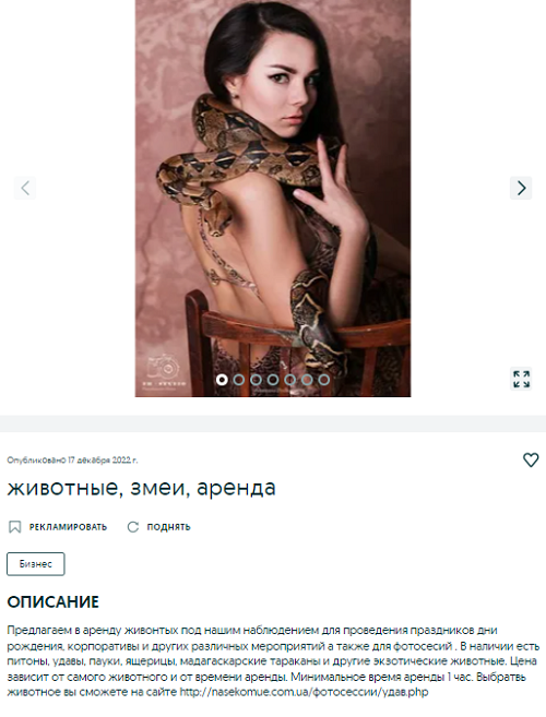 У Дніпрі орендувати можна не лише автомобіль, нерухомість чи святковий костюм, а й тварин. Журналісти dnepr.info зібрали кілька оголошень, в яких йдеться про здачу в оренду різних звірів та земноводних.