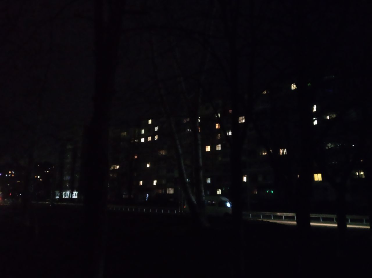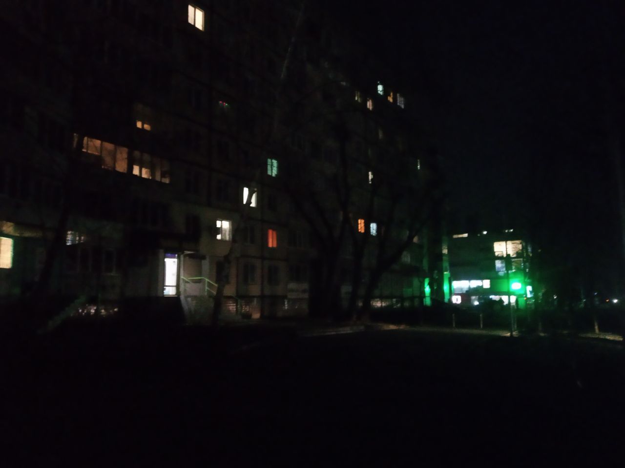 Вулиці освітлює тільки світло з вікон квартир містян.