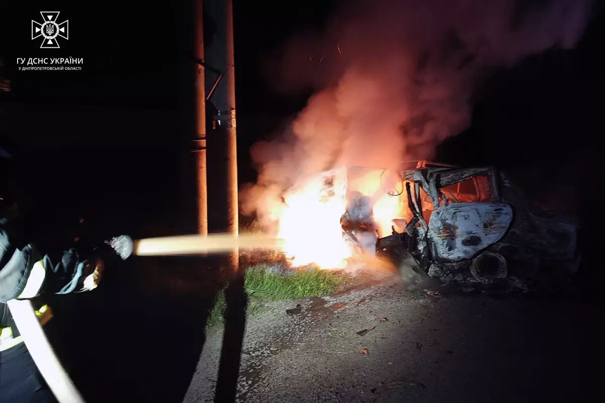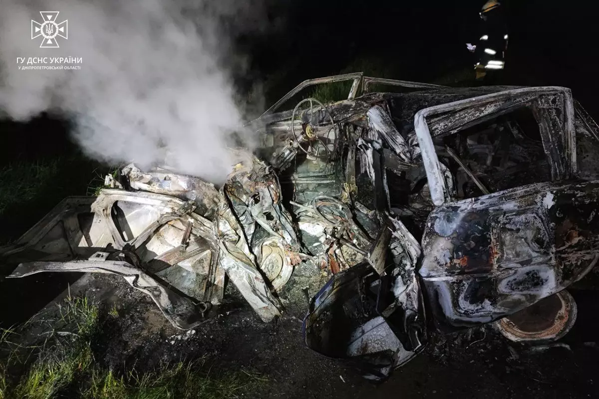 Двоє людей згоріли заживо: у Дніпрі «Славута» врізалася в залізобетонну опору та зайнялася