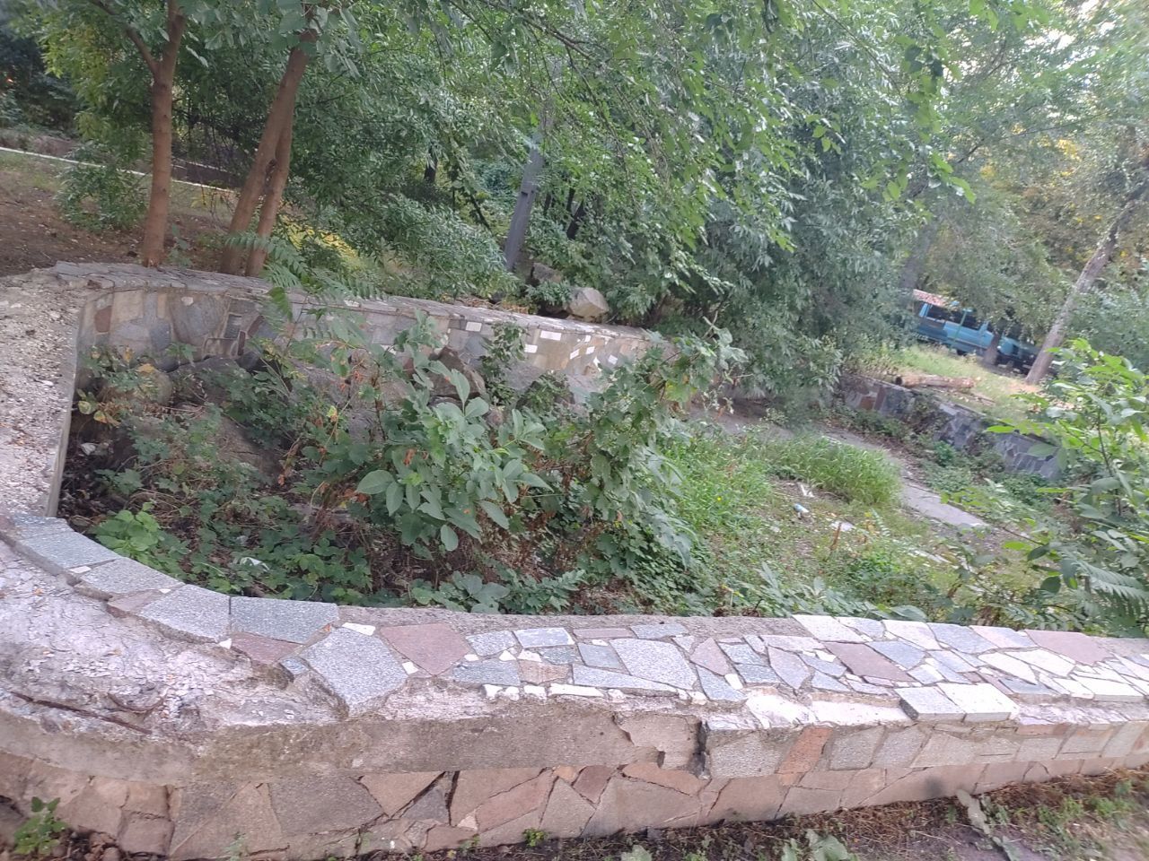 Журналісти dnepr.info знайшли один із таких занедбаних фонтанів у дворі будинку на Запорізькому шосе.