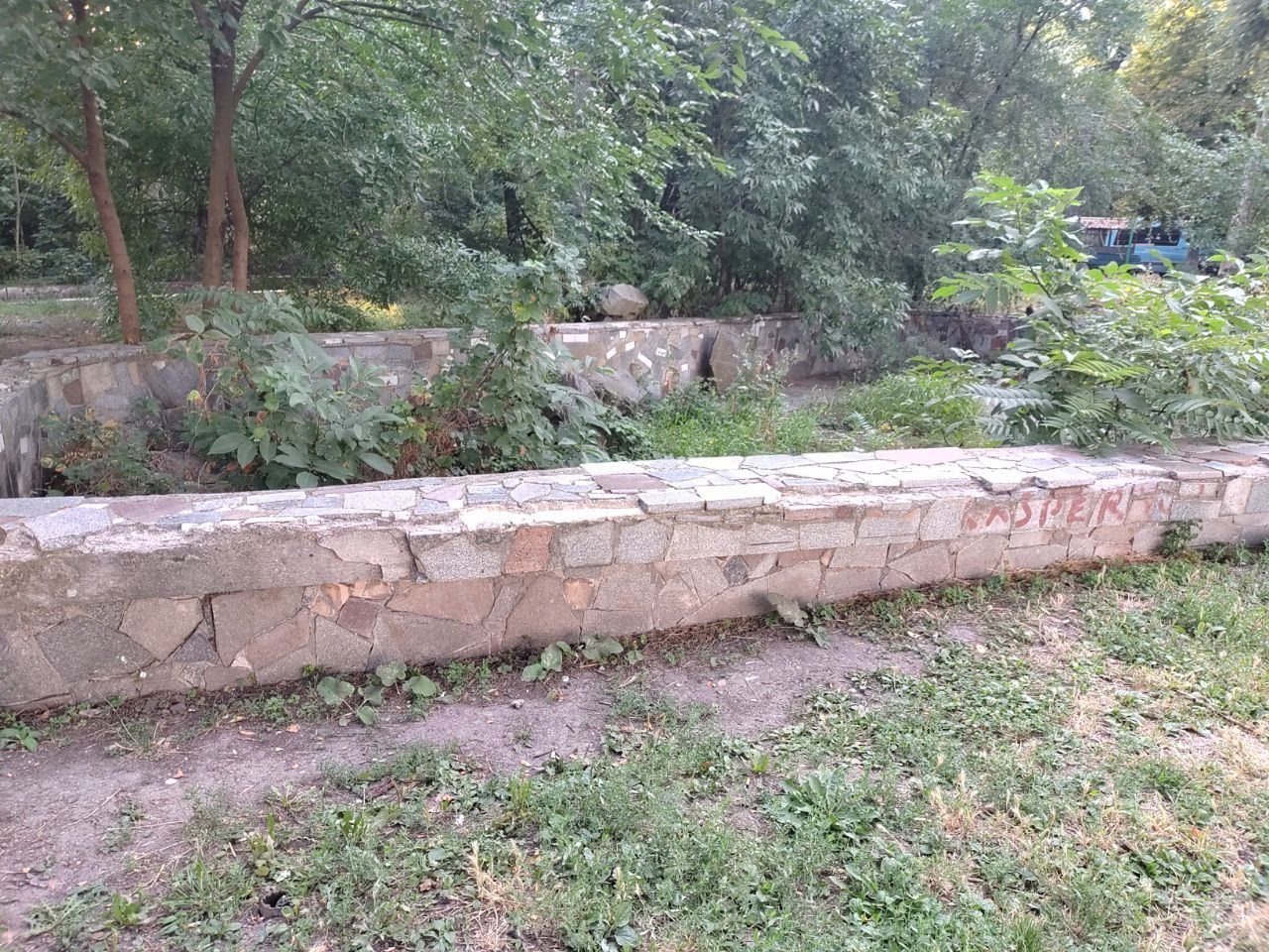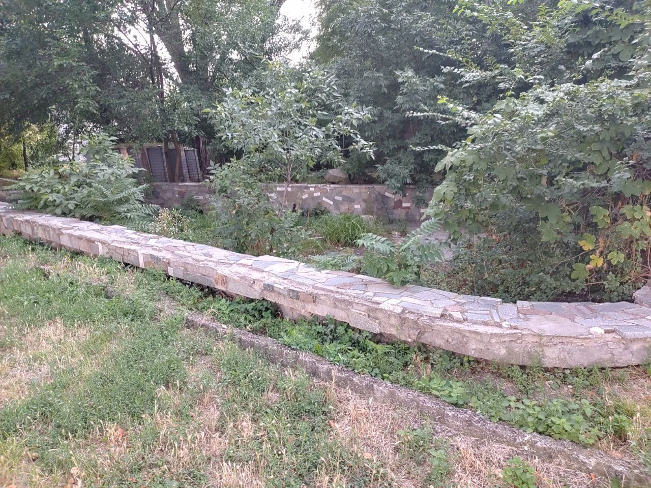 Територія біля басейну більше схожа на занедбаний сад - тут багато трав, кущів і дерев. Люди мало тут ходять. Єдині кого можна зустріти на галявині біля колишнього басейну – бездомні собаки та коти.