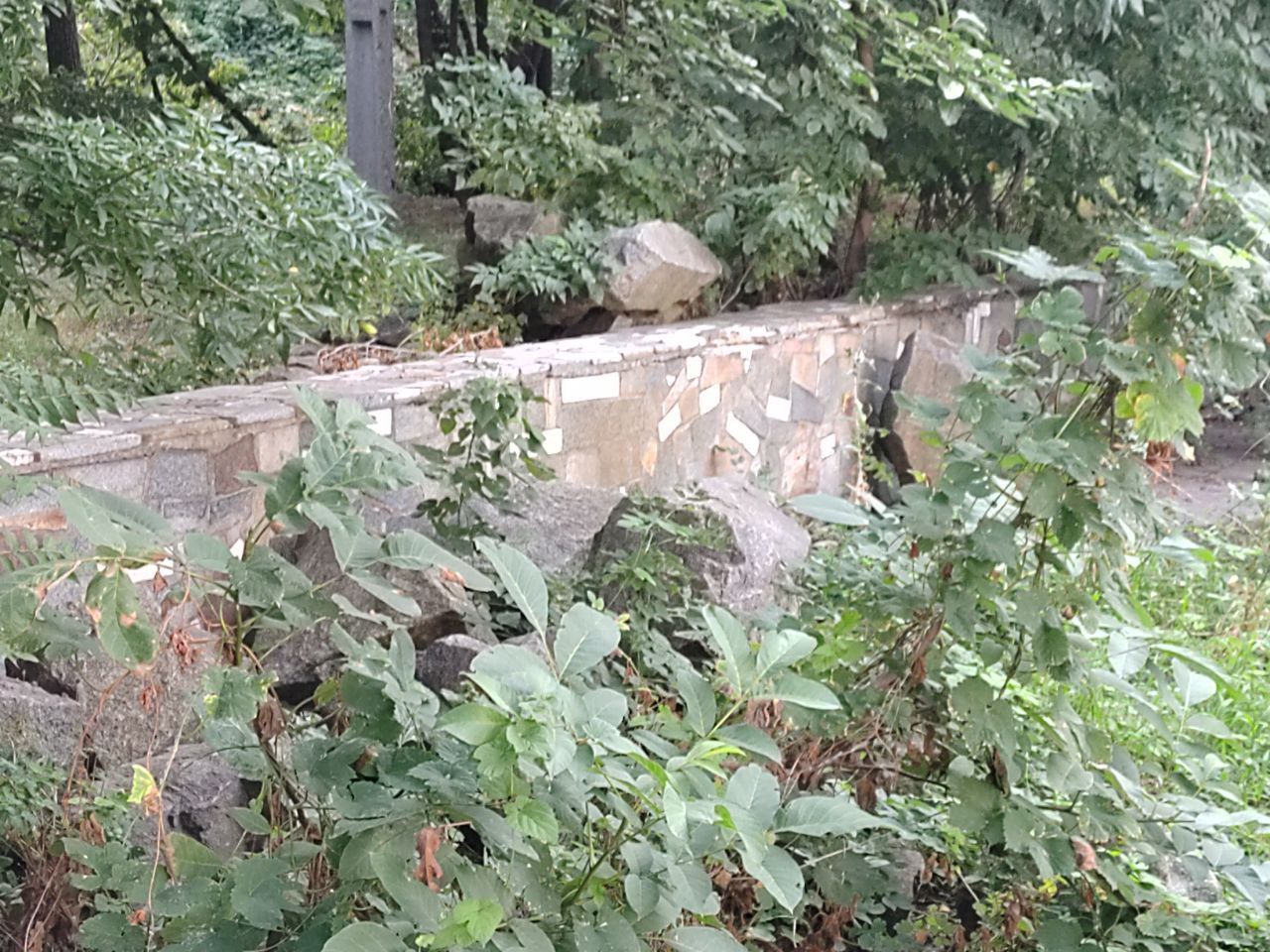 Доріжка з плит та лави зникли.