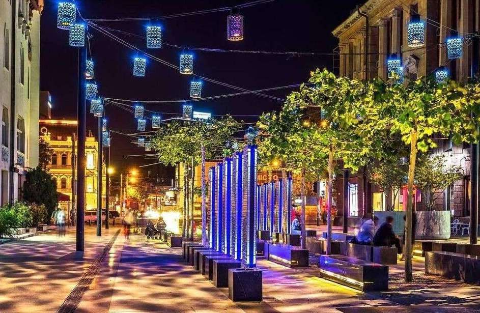 Відпочити після роботи та помилуватися красою вулиць міста можна одразу на кількох локаціях у Дніпрі. Вони перетворені на пішохідні зони, де є всі зручності для проведення часу, зустрічей та фотосесій. Тут жителі можуть гуляти з дітьми, милуватися яскравим підсвічуванням та фонтанами.