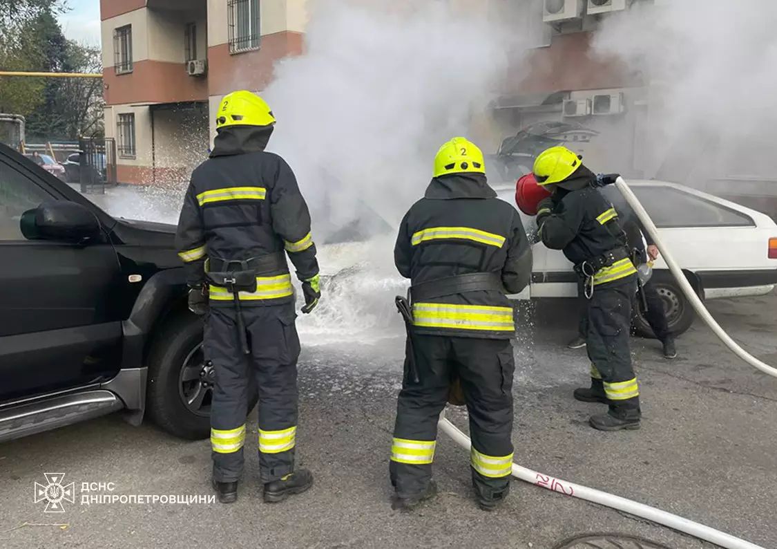 Гасили 9 рятувальників: у центрі Дніпра спалахнув автомобіль
