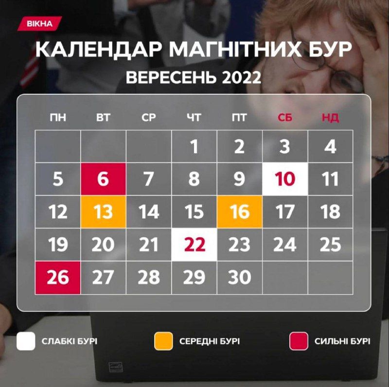 Календар магнітних бур на вересень 2022