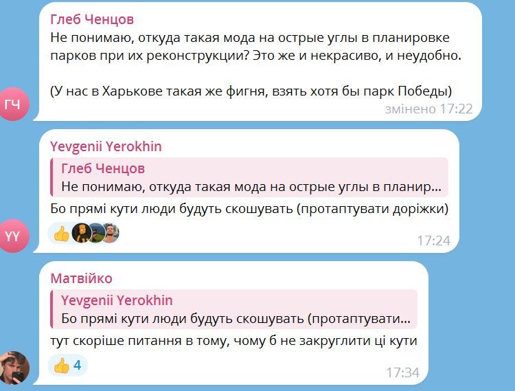 У коментарях до допису звернули увагу на те, що на алеї багато гострих кутів. Клумби, де мають висадити квіти чи багаторічні рослини, поділили доріжками.