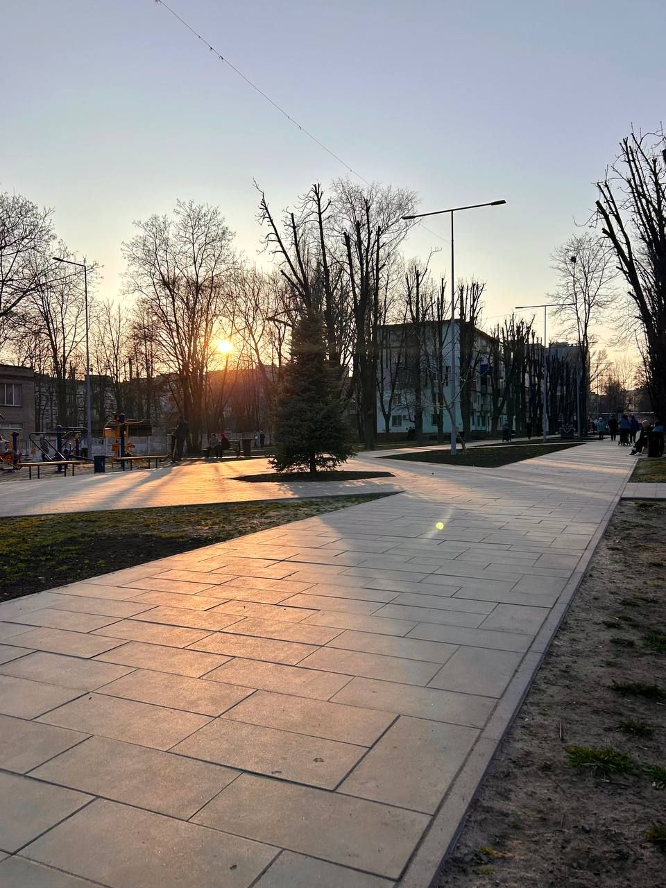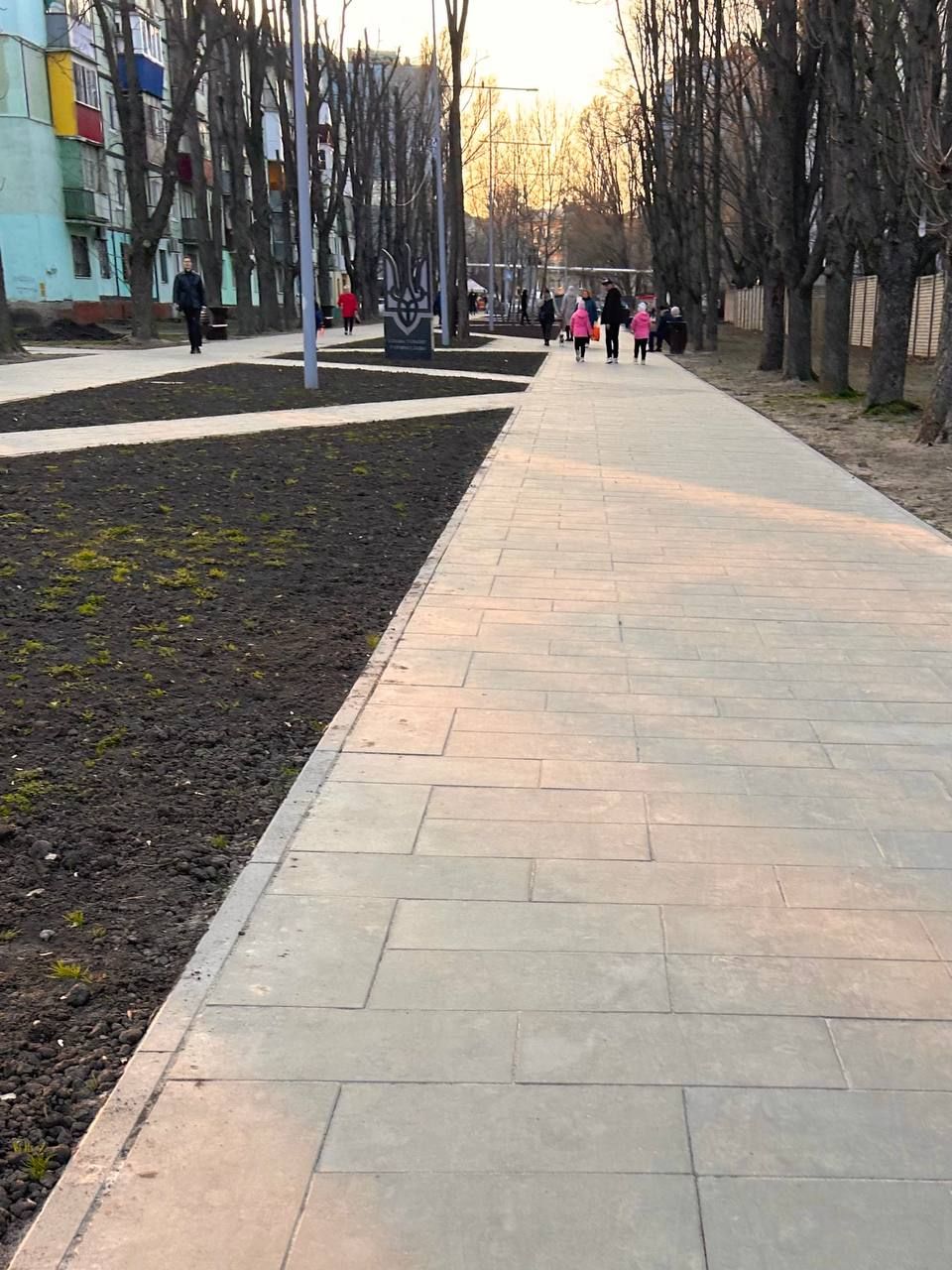 Вздовж пішохідних доріжок поставили ліхтарі, аби люди могли гуляти тут ввечері.