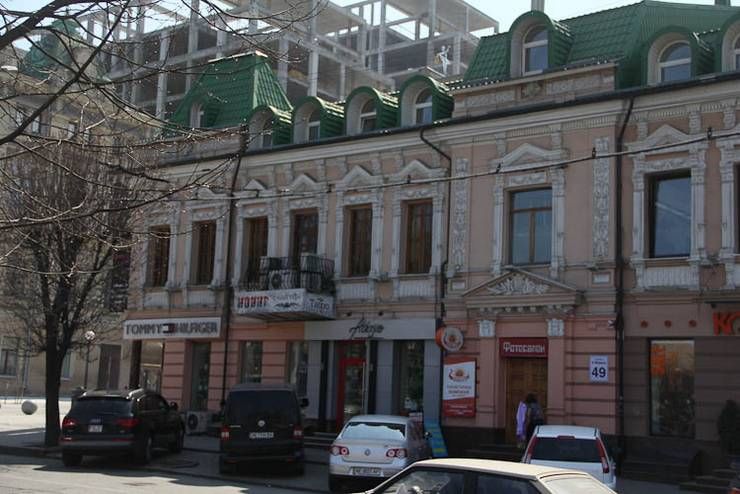 Двоповерховий будинок на перехресті колишньої вулиці Виконкомівської та центрального проспекту було зведено у середині 1880-х років. Будувався він як прибутковий. У той час у місті був бум будівництва прибуткових будинків, а нинішній бульвар був початком нової вулиці, яку щойно створили. Знаходилася ця вулиця біля балки і довго тут ніхто не хотів жити і будуватися. Будівлю було зведено навпроти тогочасної Міської Думи.