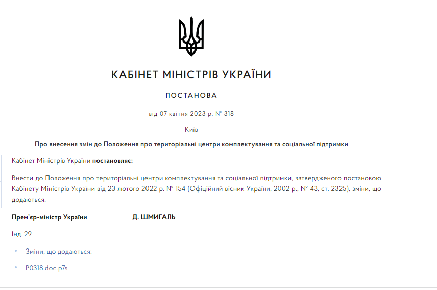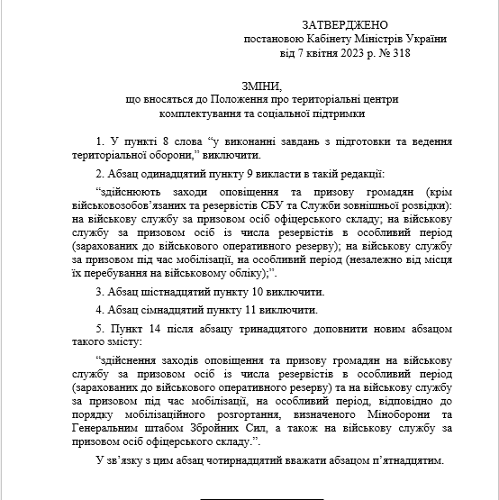 Кабінет міністрів на засіданні 7 квітня розширив функції територіальних центрів комплектування та соціальної підтримки (колишніх військкоматів) та дозволив вручати повістки військовозобов’язаним незалежно від місця обліку.