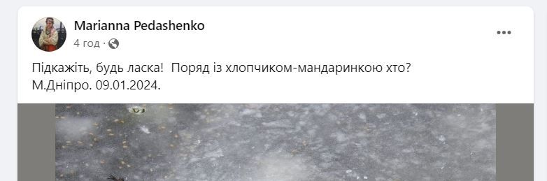 Підкажіть, будь ласка! Поряд із хлопчиком-мандаринкою хто? М.Дніпро. 09.01.2024, - написала жінка у тематичній Facebook-спільноті.