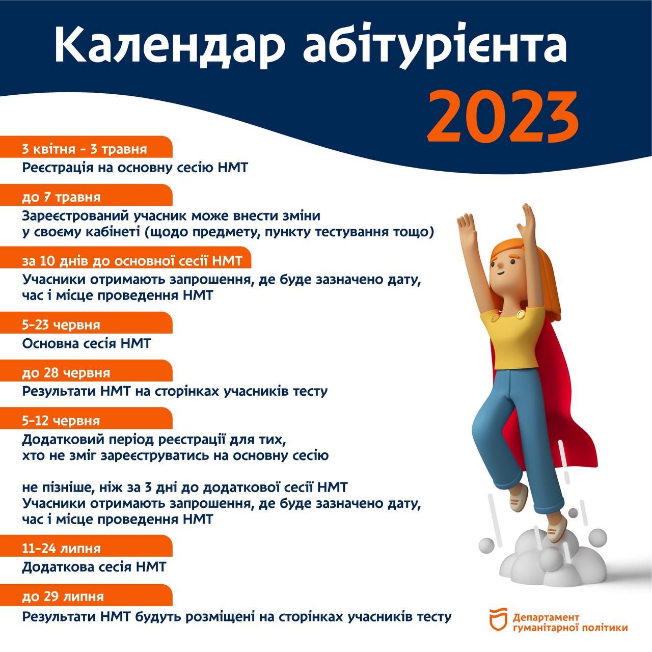 Календар абітурієнта 2023: дати реєстрації, основних та додаткових сесій НМТ