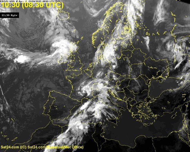 Наразі атмосферний фронт, який має принести дощі до України висить над прикордонням наших західних європейських сусідів, а вже завтра, 14 вересня, принесе опади та грози й нам.