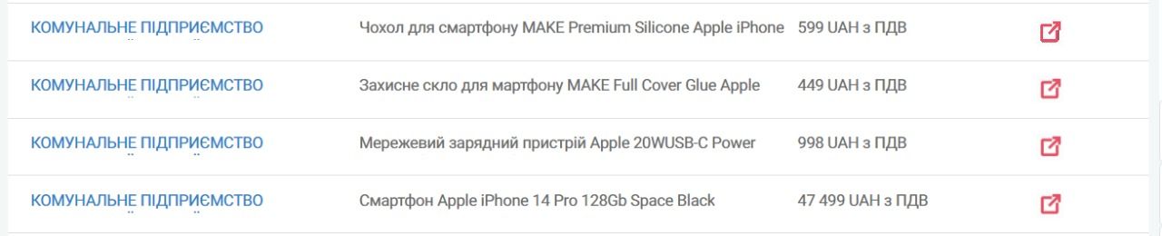 Так, нещодавно комунальне підприємство "Міська інформаційна служба" Кам'янської міськради придбало iPhone 14 Pro за 47 499 гривень.