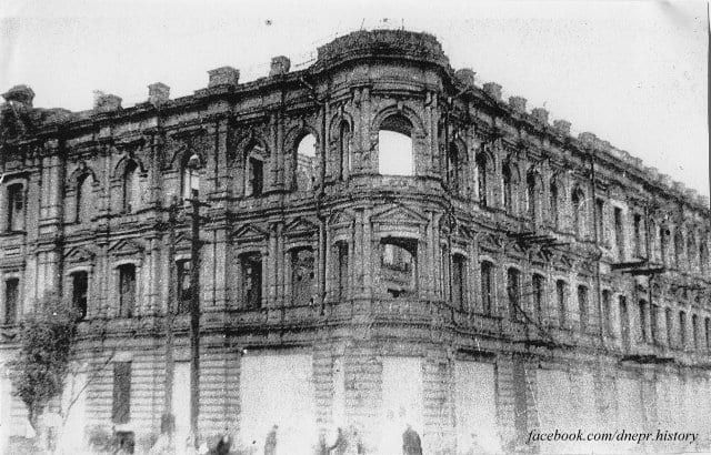 До 1949 року один із корпусів будинку був відновлений і там оселилися люди, а на першому поверсі відкрився магазин одягу. Інший корпус, що виходить на проспект, відновили пізніше і до 1990-х років він використовував трест «Дніпрогеологія».