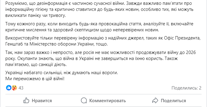 Він також закликав усіх використовувати тільки перевірену інформацію з надійних джерел.