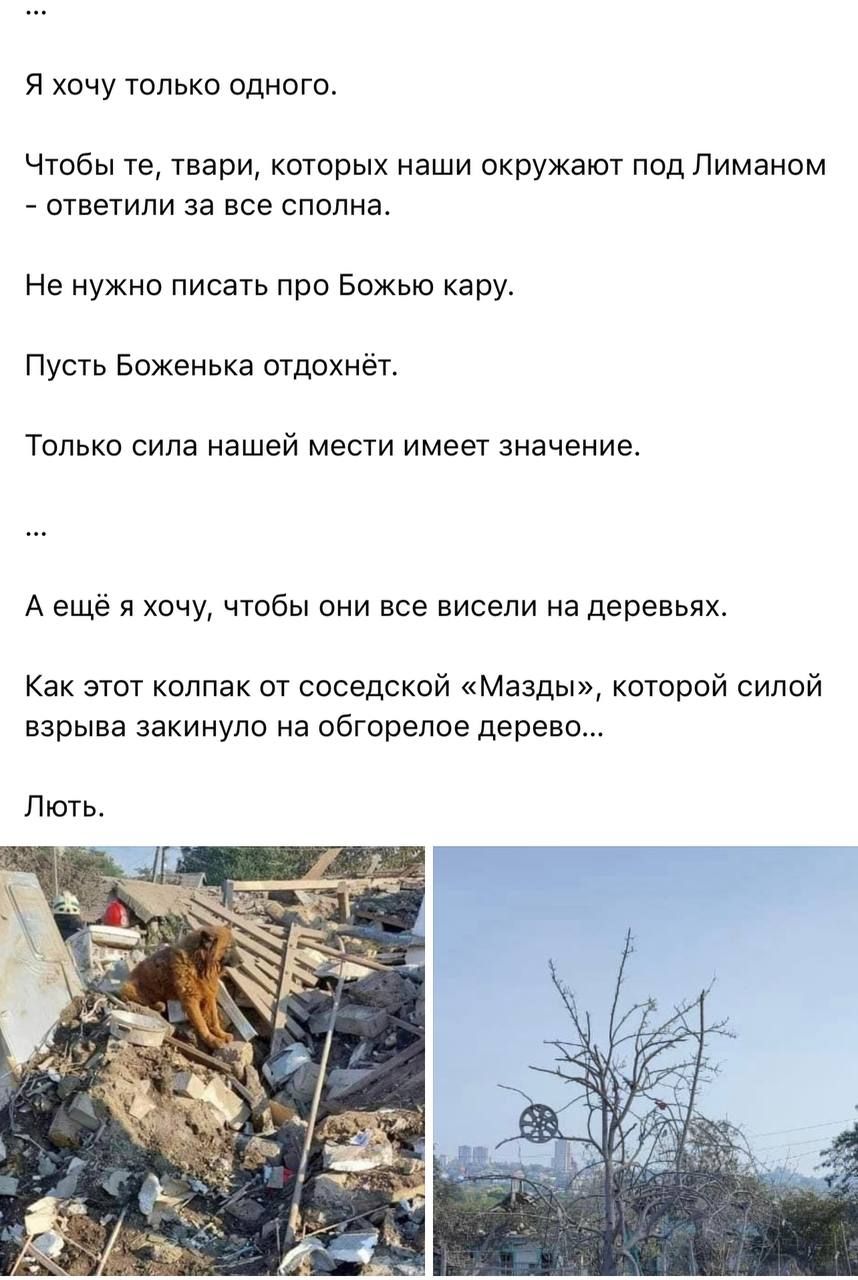 Щоб ті, тварюки, яких наші оточують під Лиманом, відповіли за все сповна.