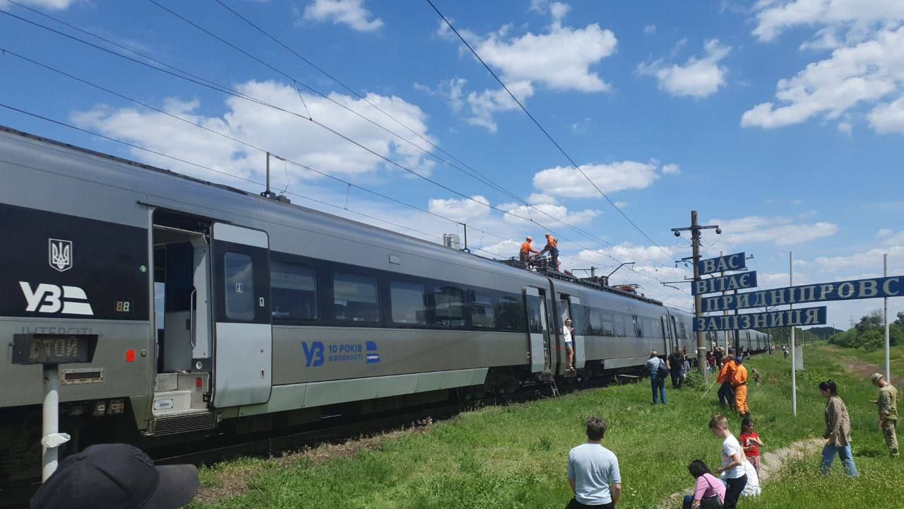 Біля П'ятихаток зупинився потяг Київ - Дніпро. Наразі відомо, що у поїзда пошкоджений пантограф та контактна мережа, тому далі він не може курсувати. Наразі на місці працюють фахівці-залізничники.