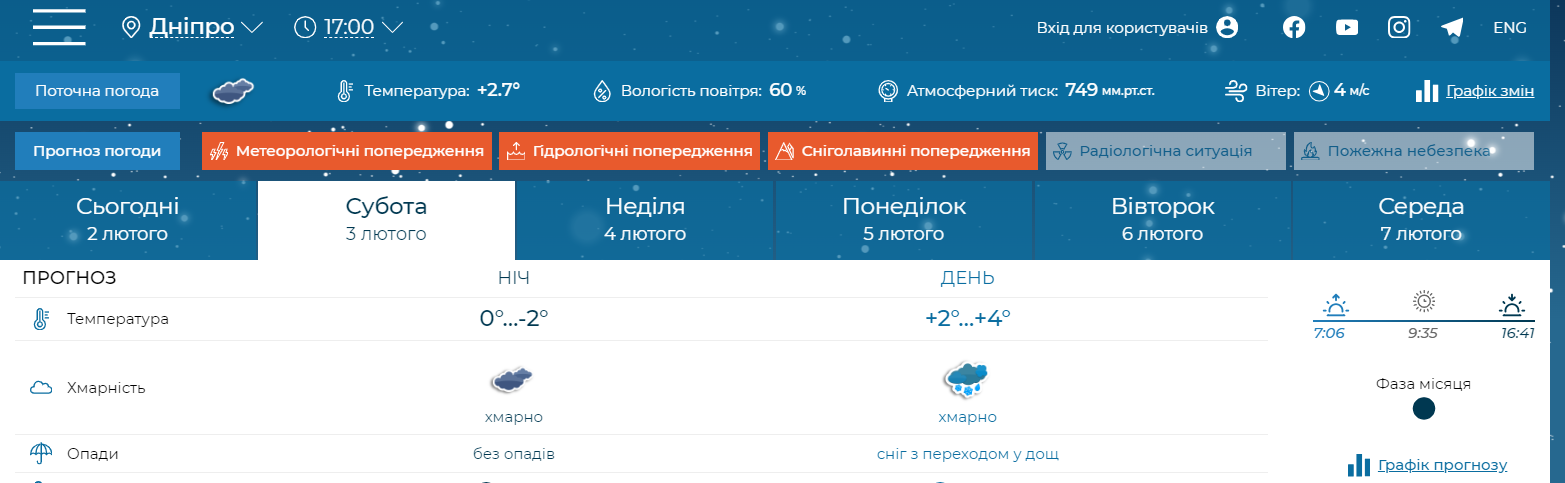 Крім того, за прогнозами синоптиків, вночі у Дніпрі буде мороз - 0°…-2°С, без опадів. А вже вдень прогнозують сніг з переходом у дощ, температура складе +2°…+4°С.