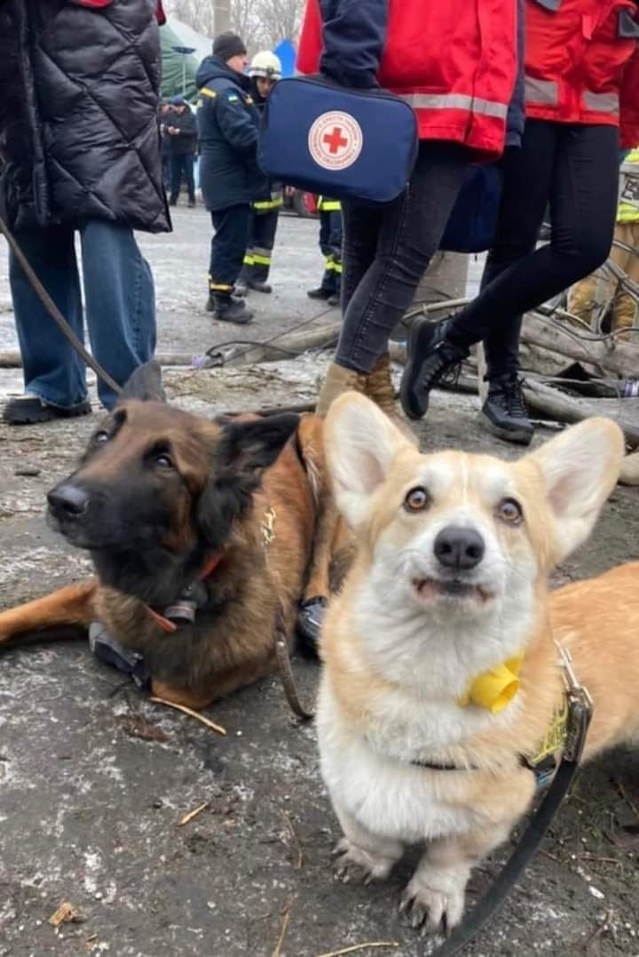 Маленький коргі та вівчарка в черевичках: історія собачок, які шукали людей під завалами будинку у Дніпрі