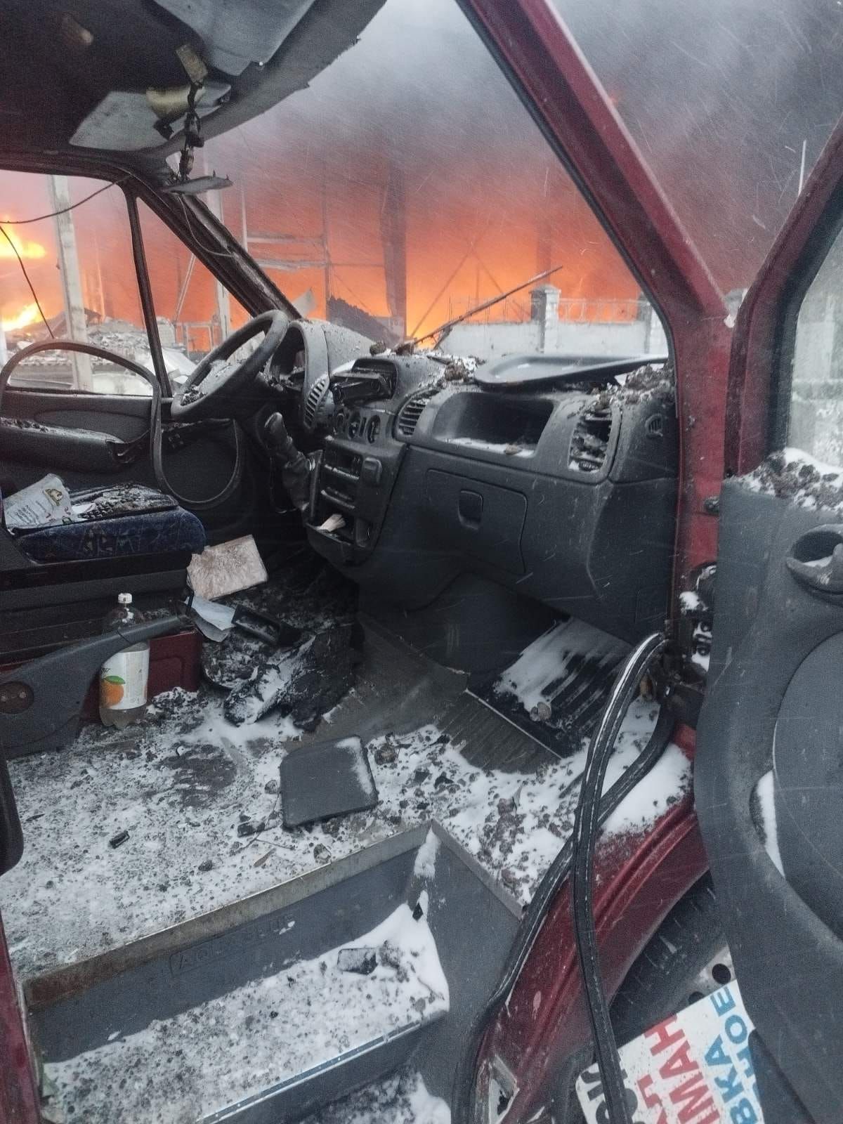 Поруч з маршруткою сталася пожежа. Ймовірно, це місце влучання ракети.