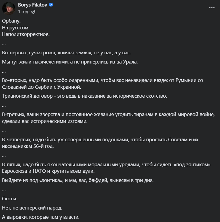 Мер Дніпра Борис Філатов відреагував на останні заяви Орбана про Україну