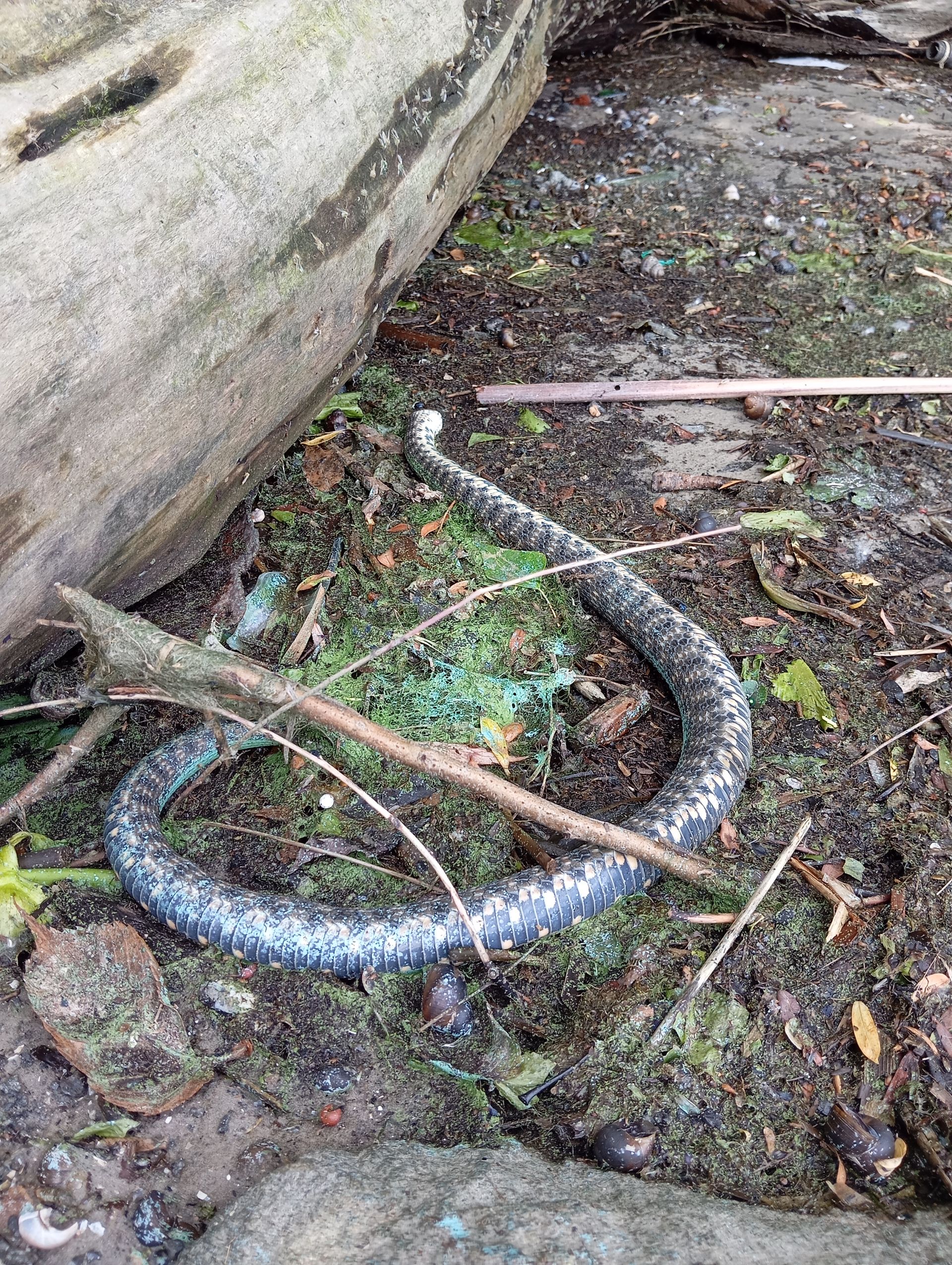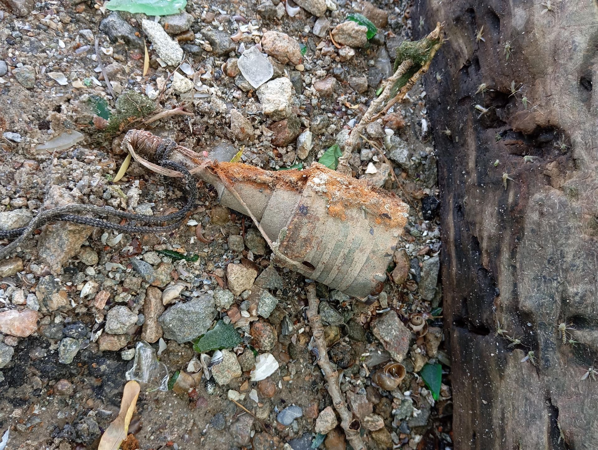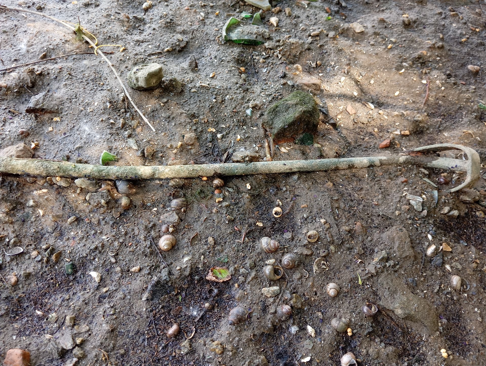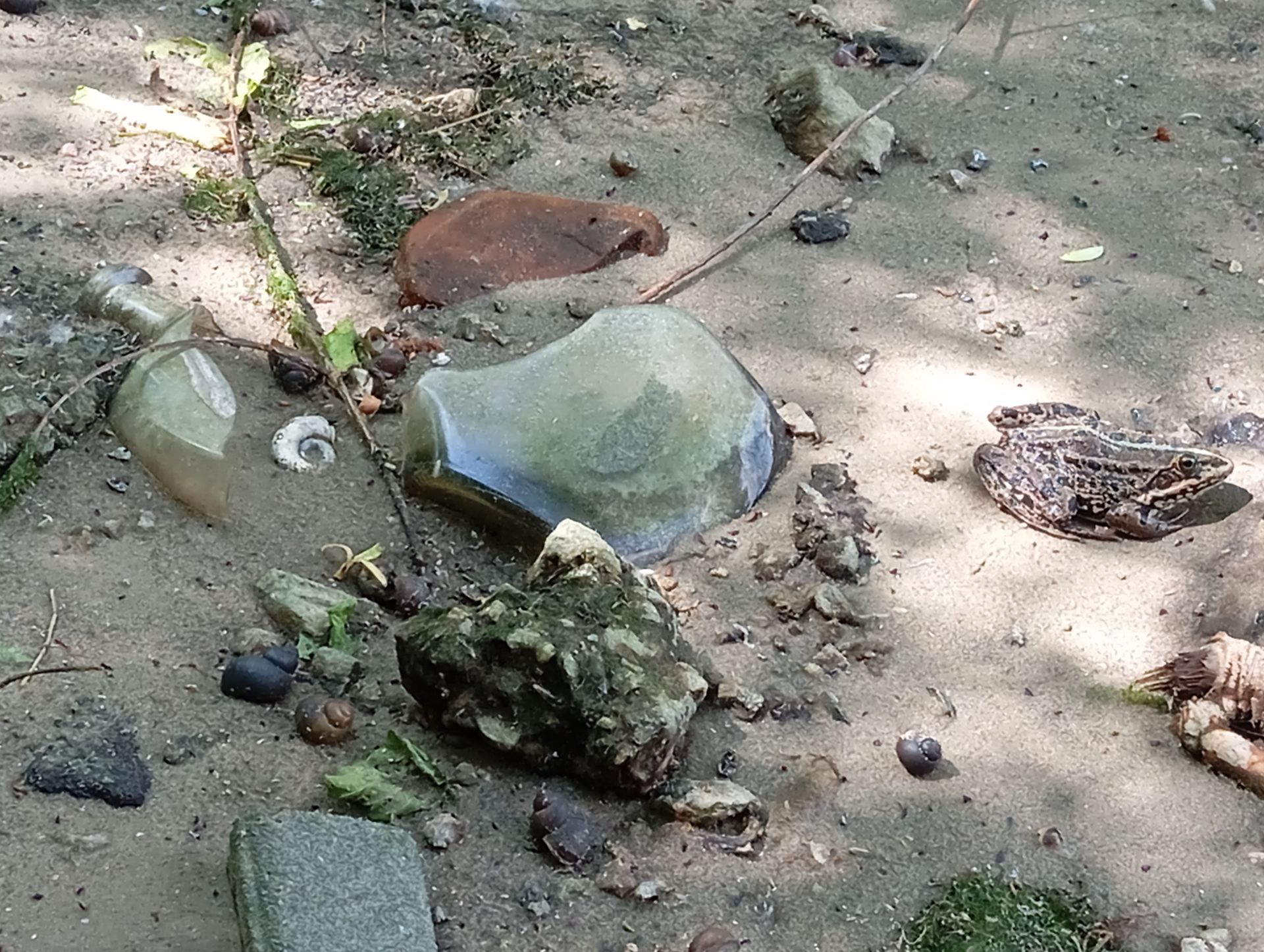 Отже, під час прогулянки нам вдалося побачити автозапчастини та металолом, втрачені особисті речі та глиняний посуд. Всі знайдені предмети, ймовірно, мають свою історію. На уламках посуду сиділи жаби, що вилізли погрітися на сонечку. Також на березі чомусь було багато великих мертвих змій.