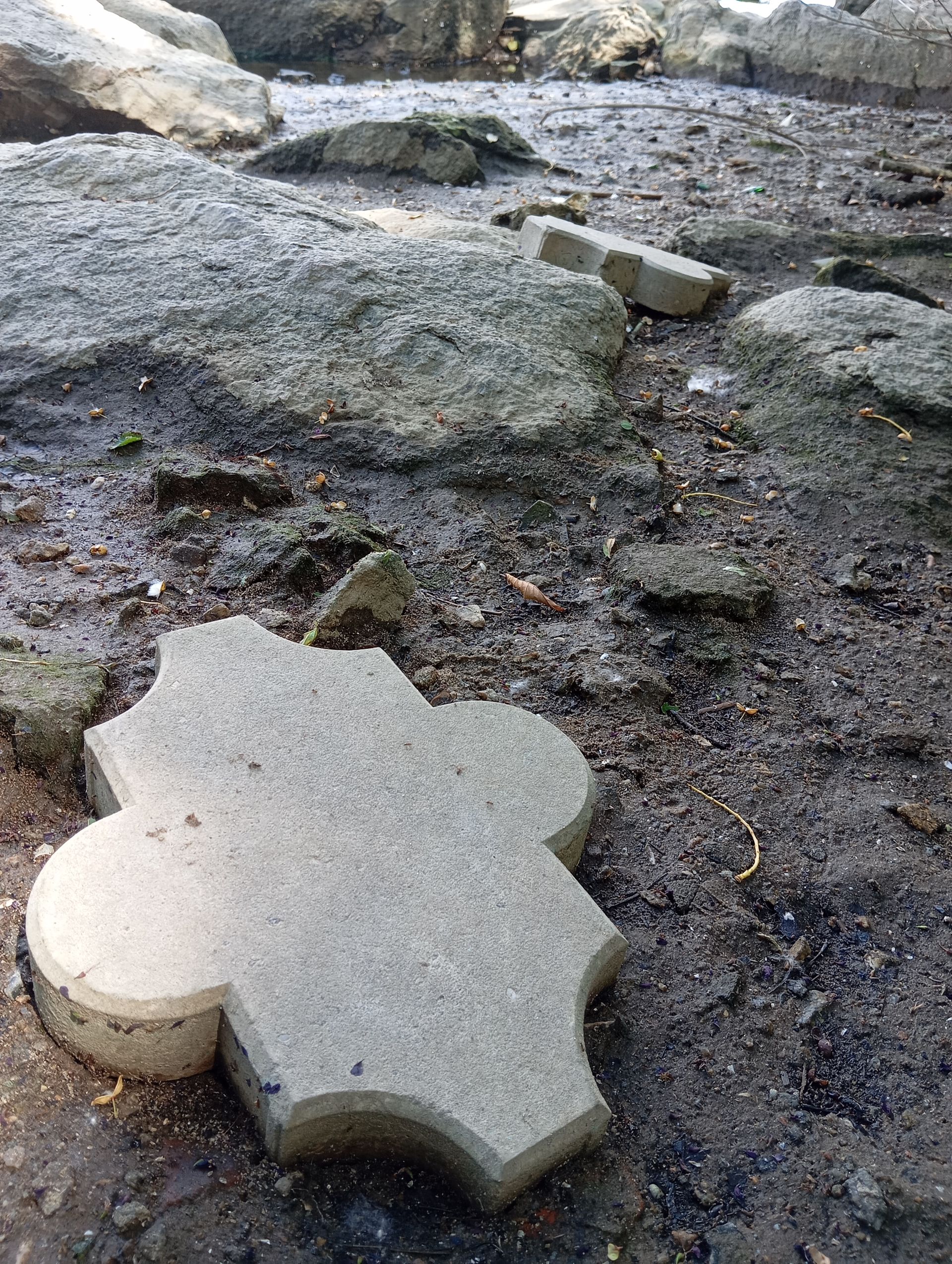 Кам'яні плити та частина якоїсь металевої конструкції.